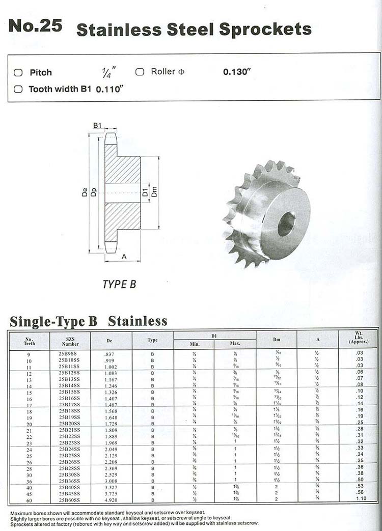 不銹鋼鏈輪NO.25
